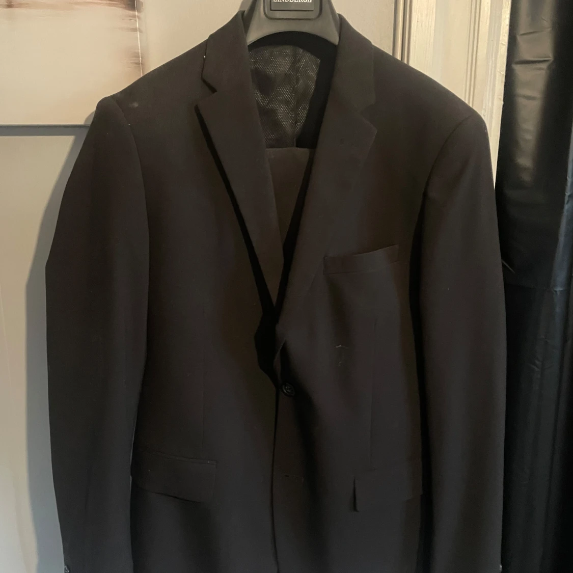 Full kostym set från Lindbergh Bra skick, bara använd ett fåtal gånger Storlek 50, observera att den är liten i storleken, så passar bäst för den som har storlek 48. Fås med en skjorta i storlek large. Ny pris 3000kr Hör av er för frågor!
