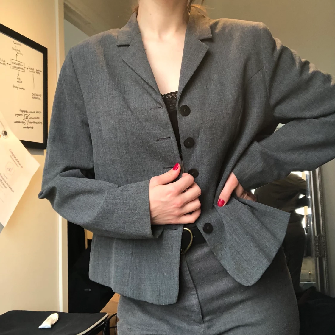 Så fin vintage 90’s blazer, perfekt för hösten! Storlek 42, jag som har 34/36 använder den som over size och tycker den är så snygg, påminner om Djerf Avenue! Superfint skick, nästan aldrig använd!
