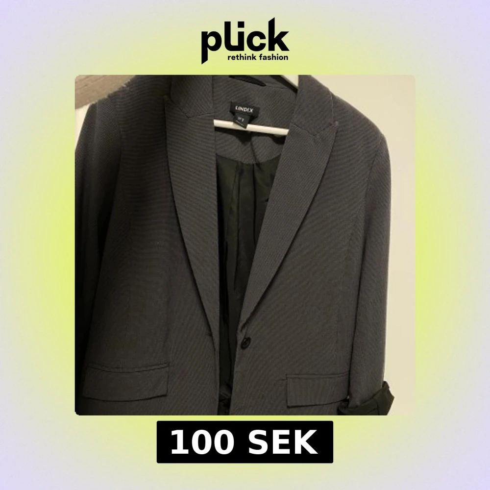 Snygg grå kavaj från Lindex i diskret rutigt mönster. Klassisk modell med slag, två fickor fram och knäppning med en knapp. Fodrad insida och ärmslut med knappdetalj.