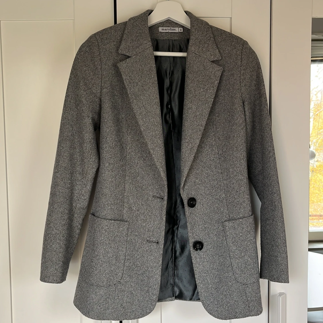 Snygg grå kavaj från Maryline med diskret randigt mönster. Klassisk passform med två svarta knappar framtill, breda slag och två stora fickor. Fodrad insida och knappdetaljer vid ärmslut. Perfekt för dig som gillar stilrena och tidlösa plagg. 20%Wool 40%Viscose 40% Polyester.