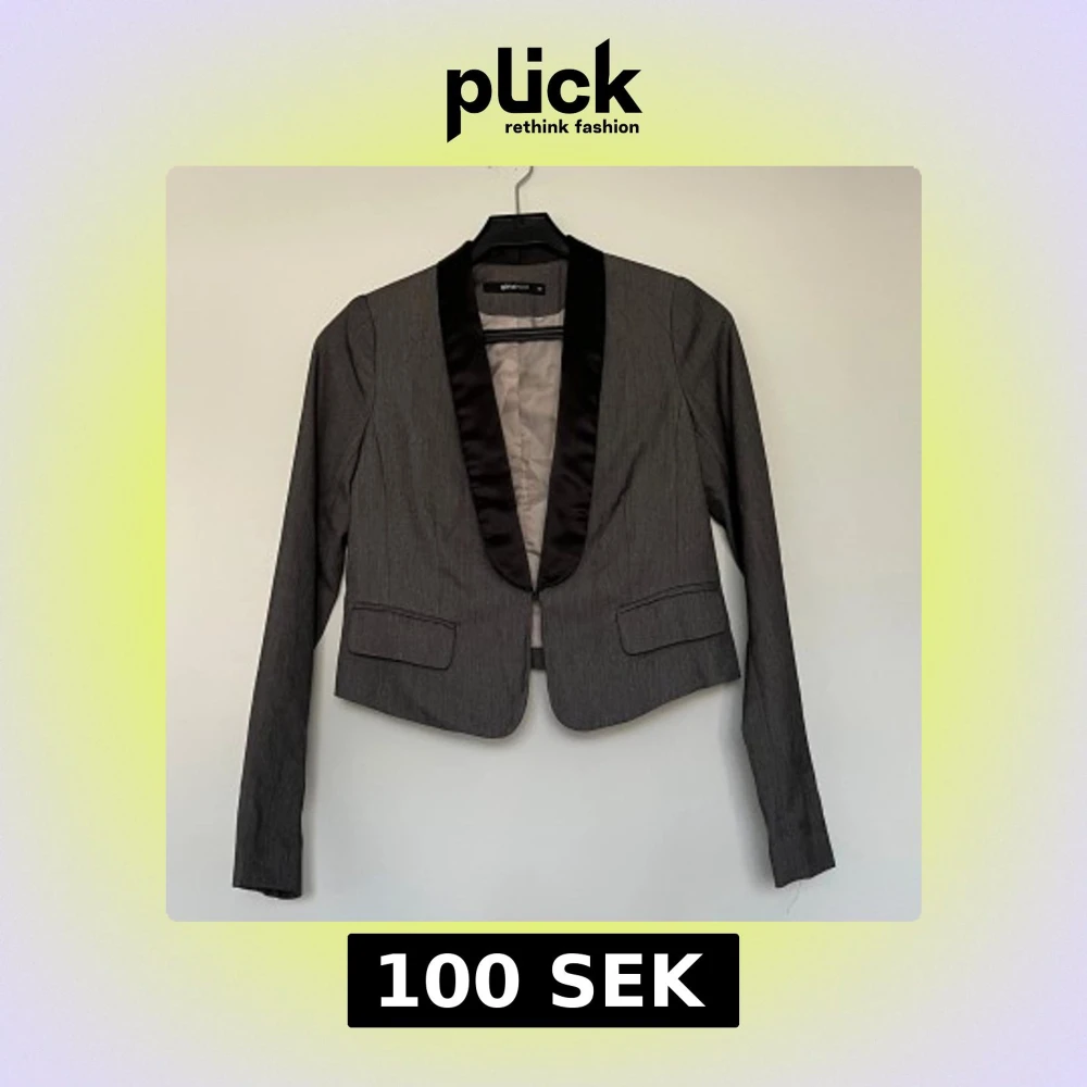 Snygg grå kavaj från Gina Tricot med svarta detaljer på kragen. Den har en kroppad passform. Kavajen har två fickor framtill. Innertyhet är lite slitet på två ställen men inget på utsidan.💕