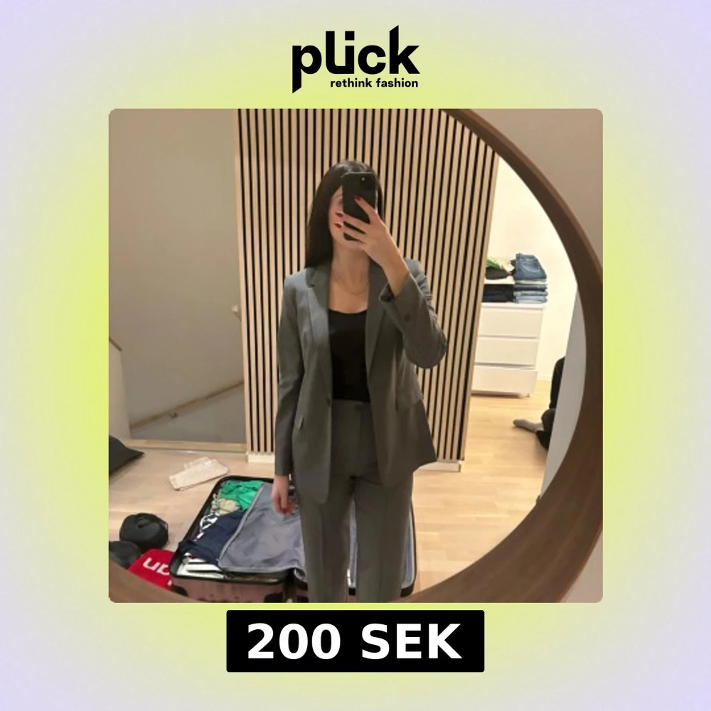 Snygg grå kostym med kavaj och matchande byxor. Kavajen har en klassisk passform med en knapp framtill och byxorna är raka. Perfekt för en stilren look.