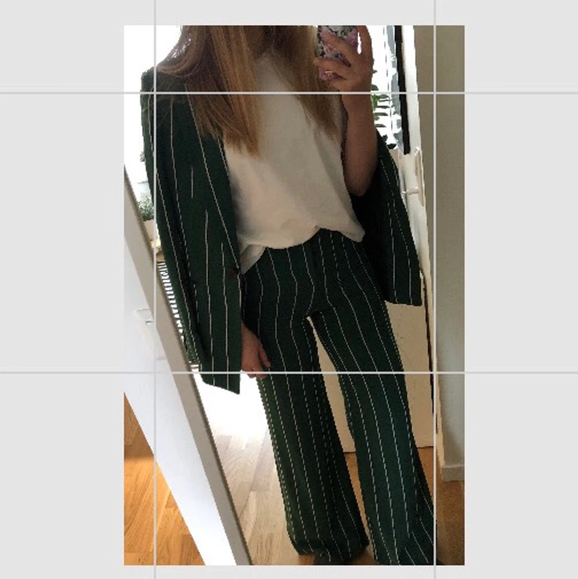 Grön/vit randig kavaj med tillhörande vida byxor säljes. Storlek: 34 på både kostymen och byxorna. Märke: HM. Helt slutsålda. Skick: Fint, nästintill oanvända då jag endast använt de ett par gånger. Pris: 300kr (vid snabb affär kan jag priset diskuteras). Jag betalar halva fraktavgiften. Betalning via Swish!