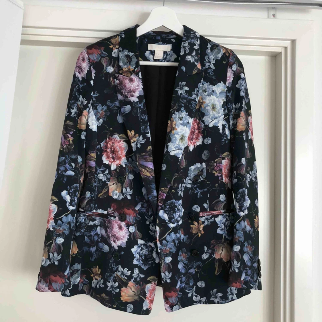 Kavaj från H&M i strl 34 i fint blommönster. Materialet ger en känsla av satin och den håller formen bra utan att bli skrynklig. Knappt använd, som ny ✨ Frakt tillkommer/upphämtning i Sollentuna.
