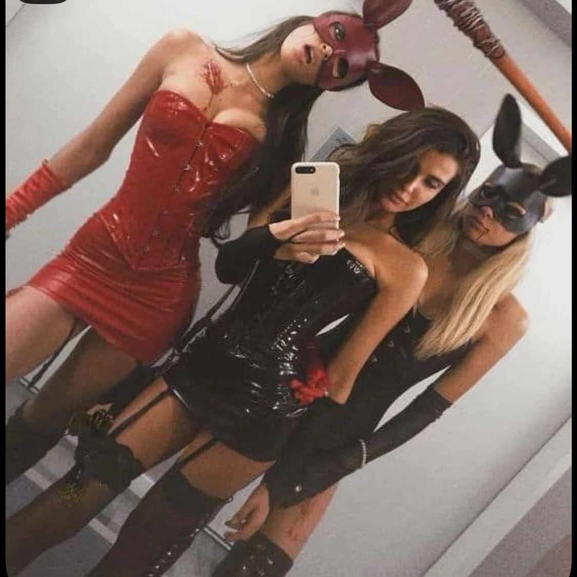 OBS! Den är nästan identisk till tjejen på bilden men skriv privat för egna bilder på kostymen!! Säljer min halloweenkostym i helrött. Ingår: masken, handskar, korsett xs, kjol xs och boots 37😍