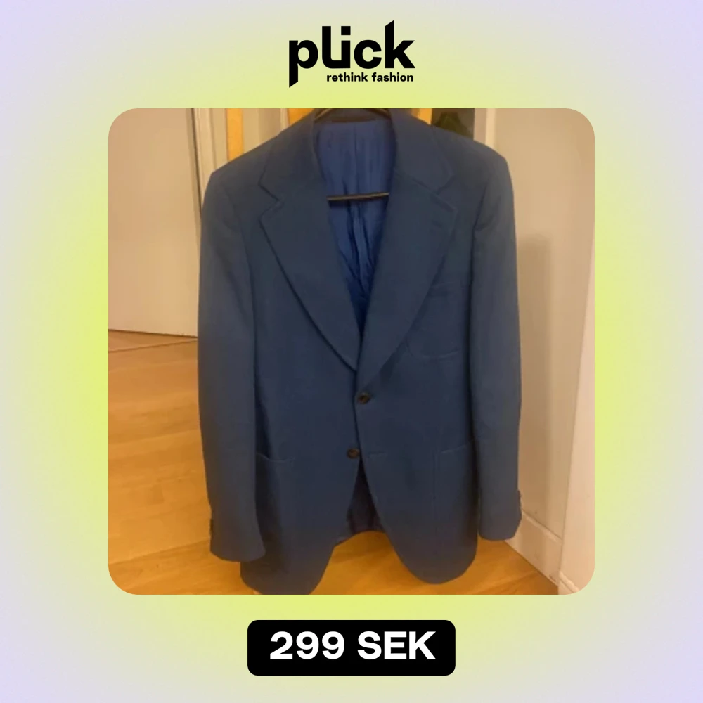 Kavaj i superskick. Inga defekter förekommer. Breda, trubbiga slag. Ärmlängd: 63,5 cm Axel-axel: 44 cm Längd (rygg): 76 cm Midja: 96 cm