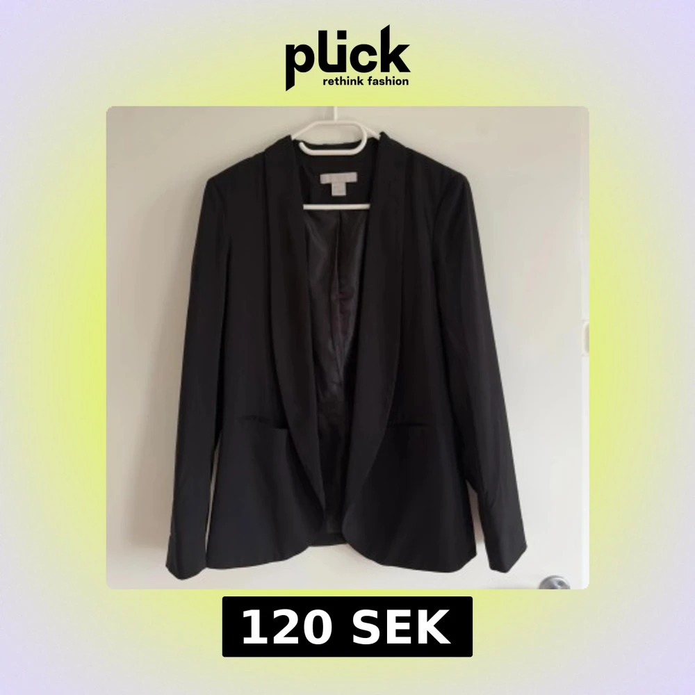 Snygg svart kavaj från H&M i storlek 34. Kavajen har klassisk design med lång ärm, två fickor framtill och mjukt foder. Materialet är 92% polyester och 8% elastan, fodret är 100% polyester. Perfekt för dig som gillar stilrena och enkla plagg.