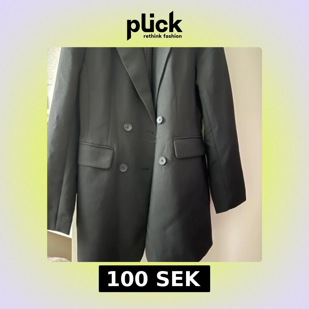 En svart kavaj som är i ett nytt stick som går att styla spå olika sätt. Med två sidfickor och fyra knappar