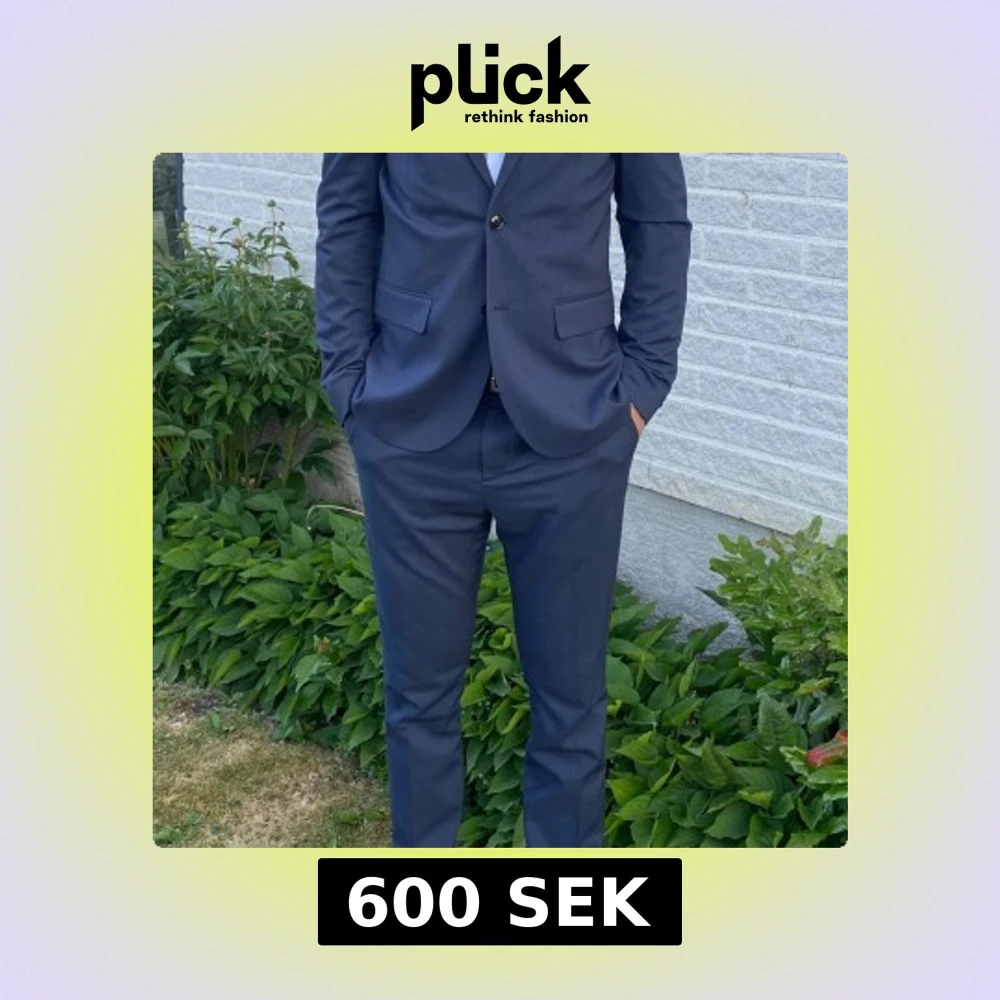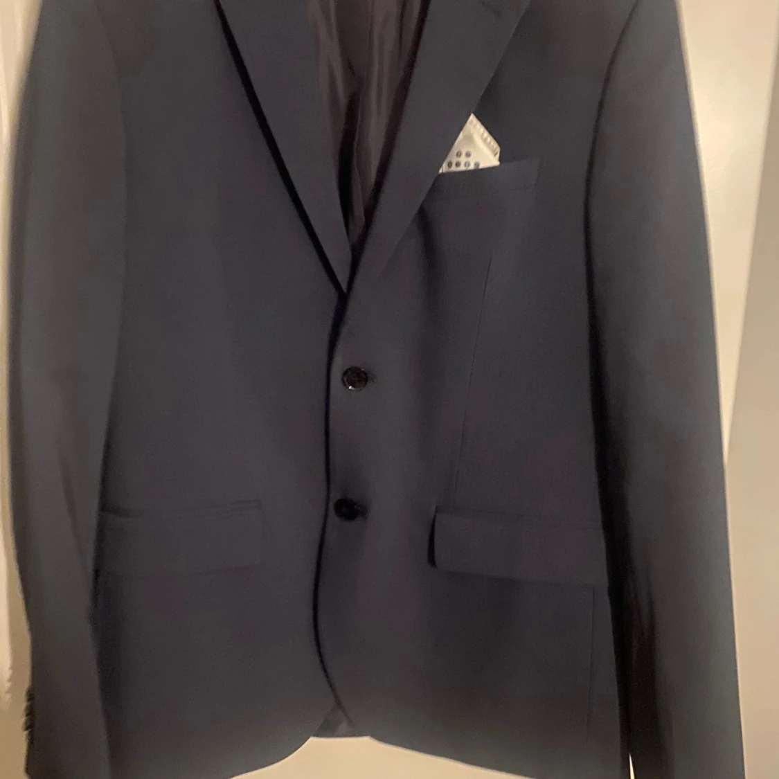 Kostym endast använd 2 ggr, köpt på H&M vår-23, mycket fint skick. Marinblå. Slim fit. Byxa stl 52 skinny fit. Kavaj stl 50 slim fit, obs näsduk ingår ej. Skjorta stl S easy iron. Nypris ca 1550kr