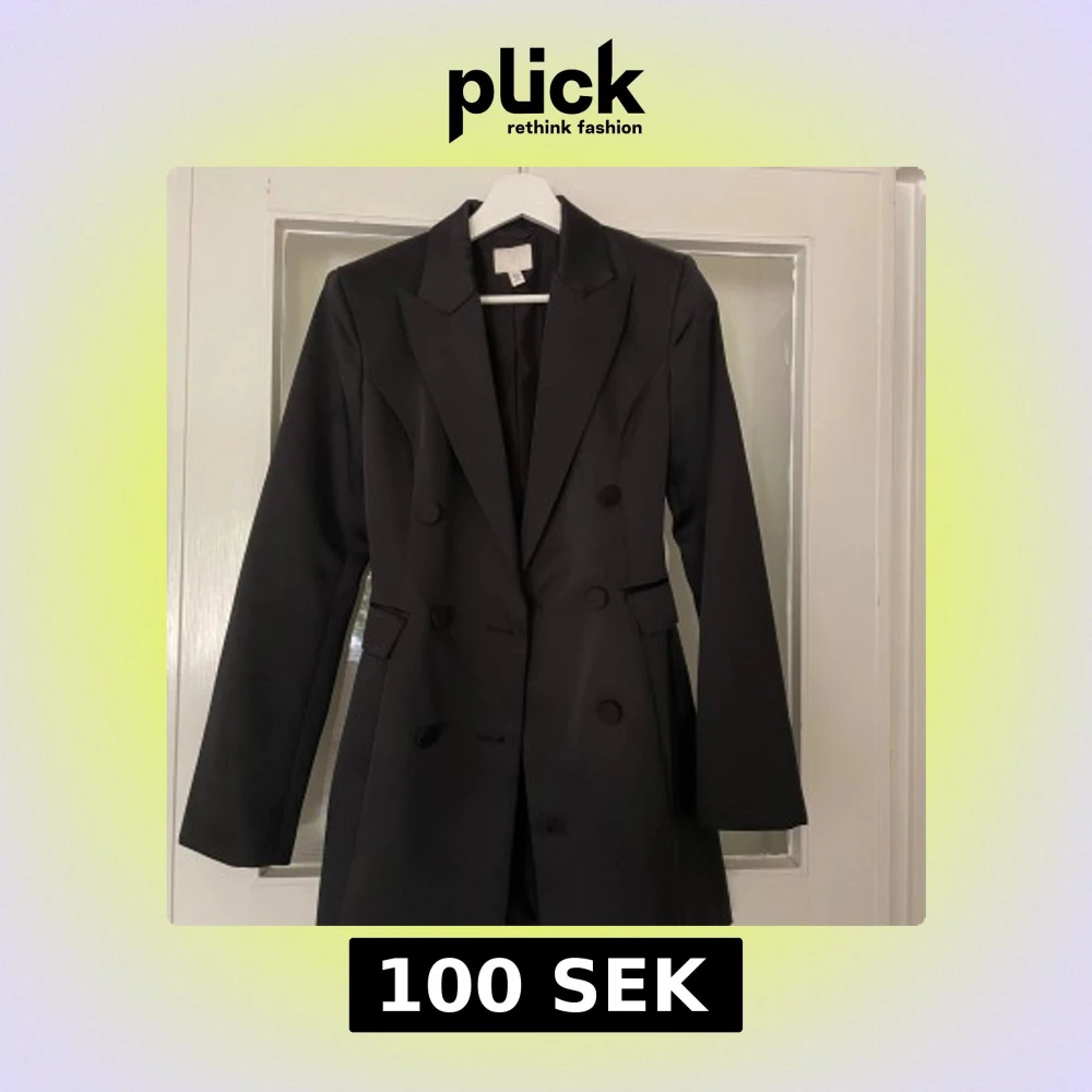 Svart blazer från HM. Går att använda som klänning. Strl 34. Använd en gång