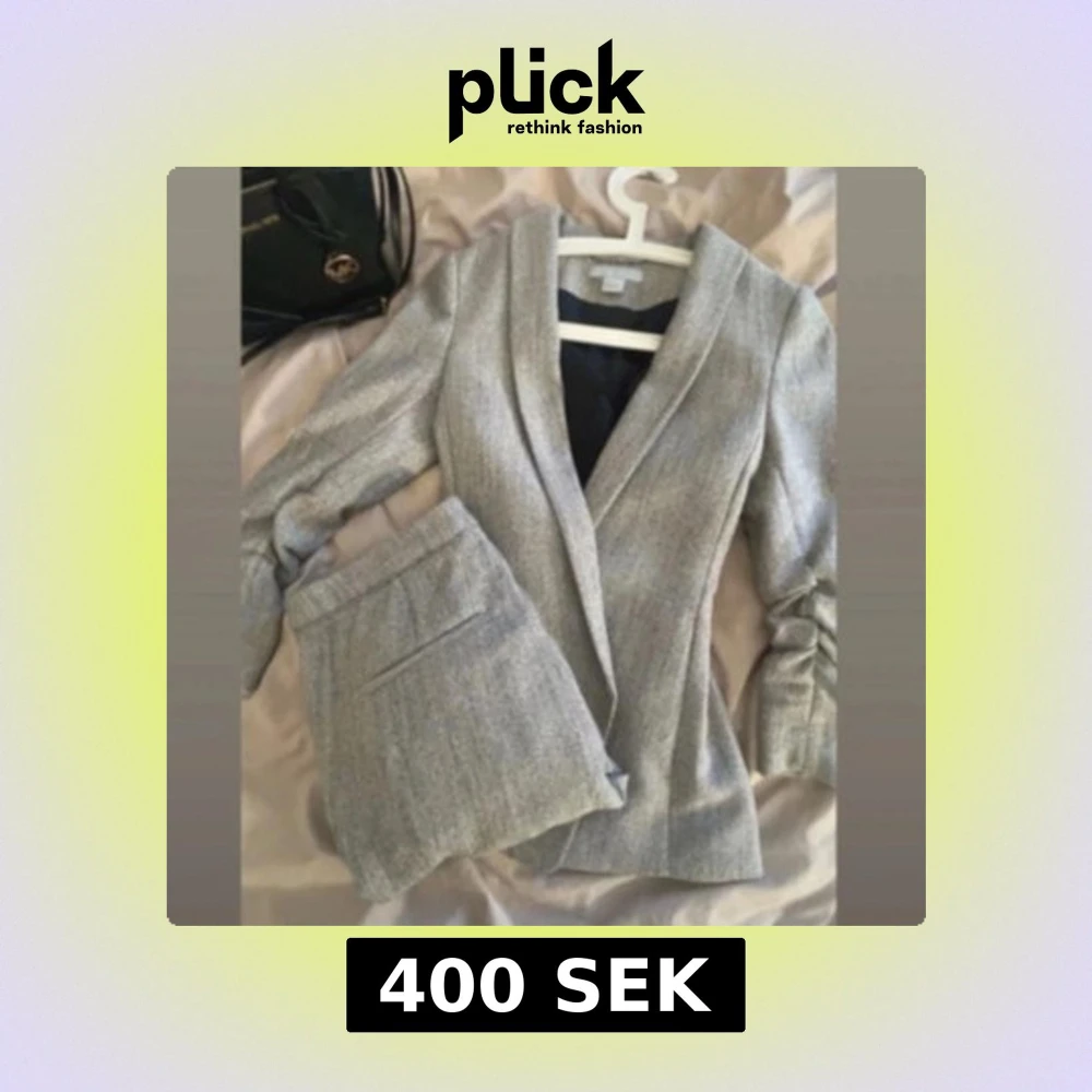 Snygg grå kostym med klassisk kavaj och matchande byxor. Kavaj i storlek XS och byxor i S