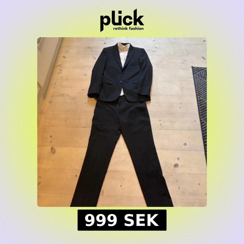 Säljer en svart kostym med vit skjorta från Lindberg. Vanlig passform (slim) , komplett med matchande kavaj och byxor samt en vit skjorta. Perfekt för bal eller fest. Kavajen har knappar framtill och skjortan är långärmad med krage. Totalt kostar byxor, kavaj och skjorta runt 3000kr (skjorta 1000kr, kavaj och kostymbyxor 2000kr) väldigt bra skick och knappt använda 9,5/10. Pris för hela kostymen 999. Men de går att köpa sakerna för sig om de skulle önskad. Skriv för funderingar! Storlek s/m