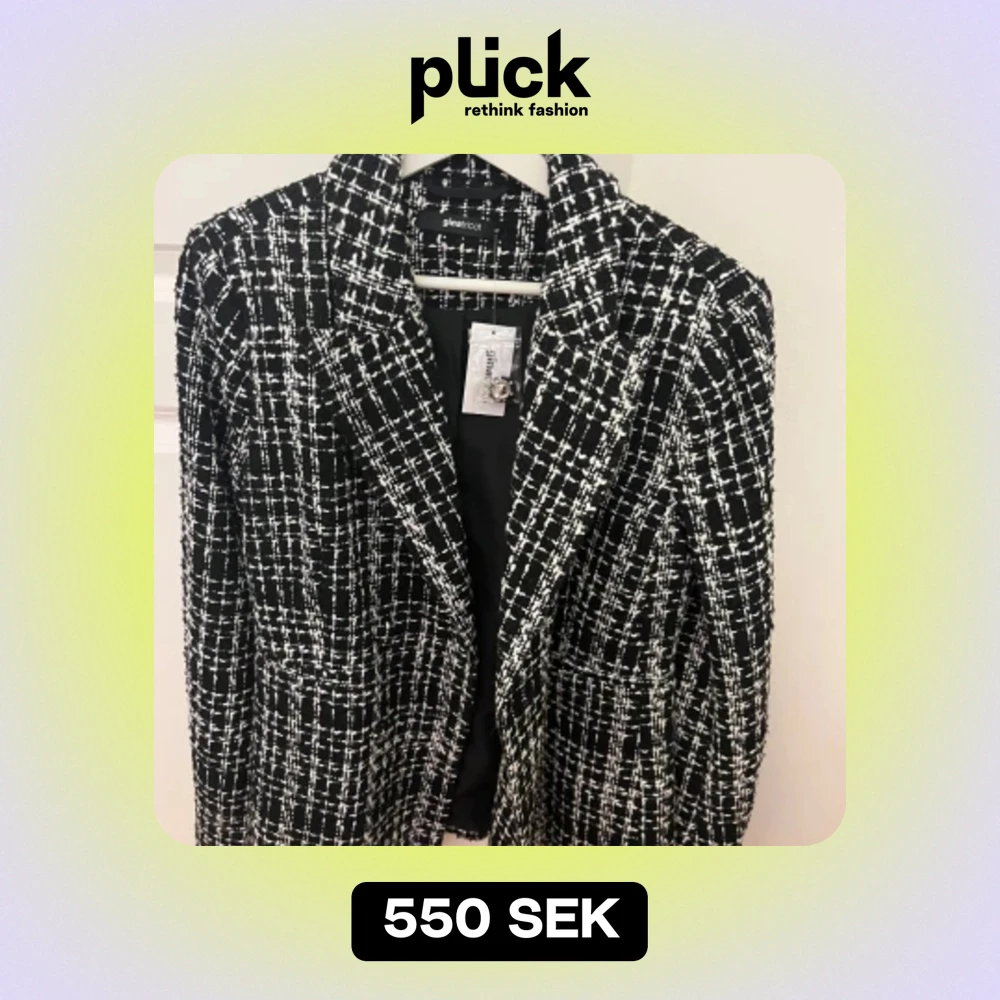 Super snygg kavaj med svart vitt mönster. Har litet puff vid axlarna som gör den till extra lyxig. Köpt från Gina men kommer inte till användning. Helt ny!! Aldrig använd.