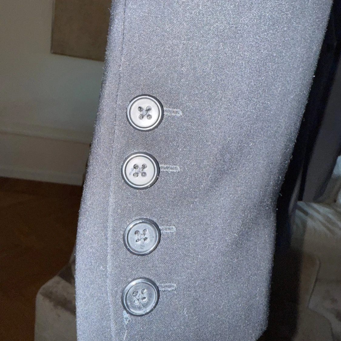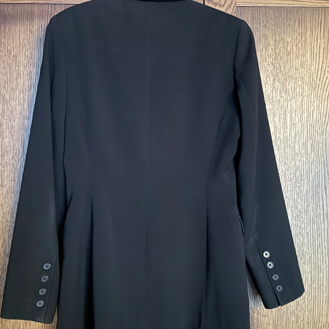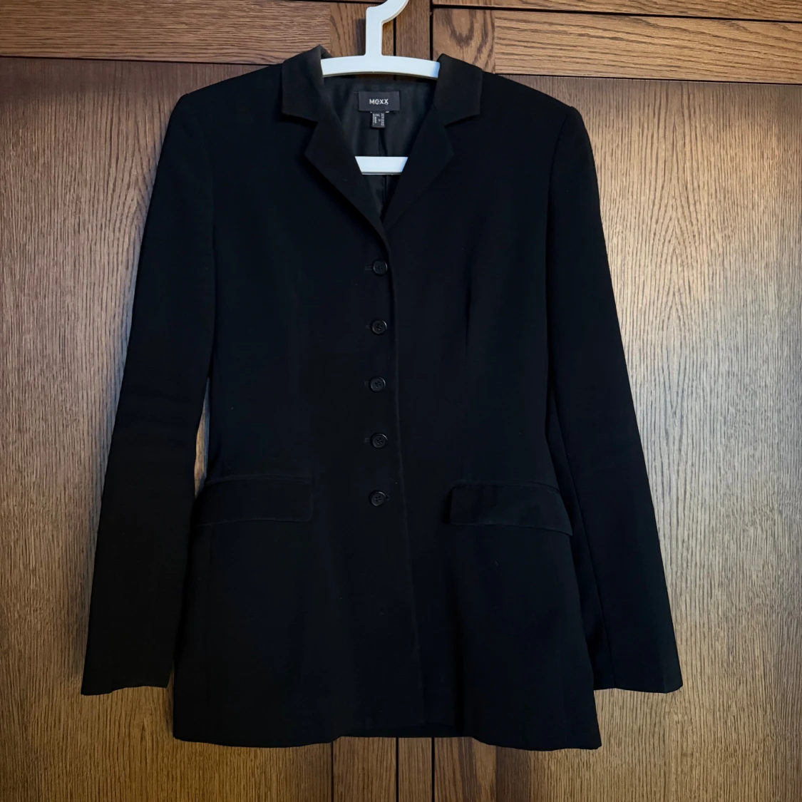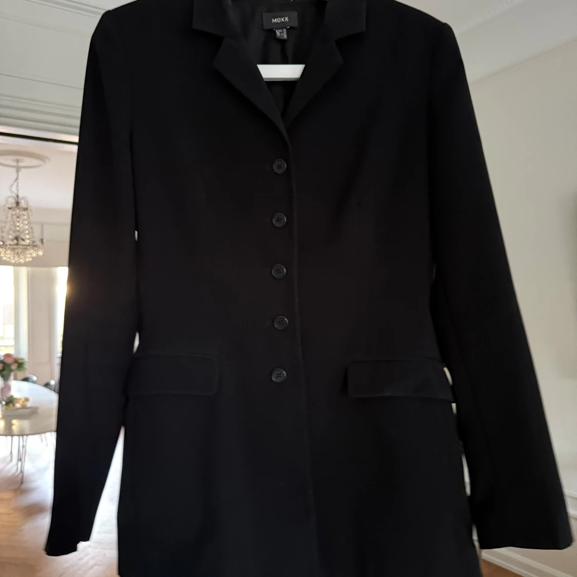 Lång kavaj från Mexx. Fickor. 4 st knappar på varje ärm som dekoration.
