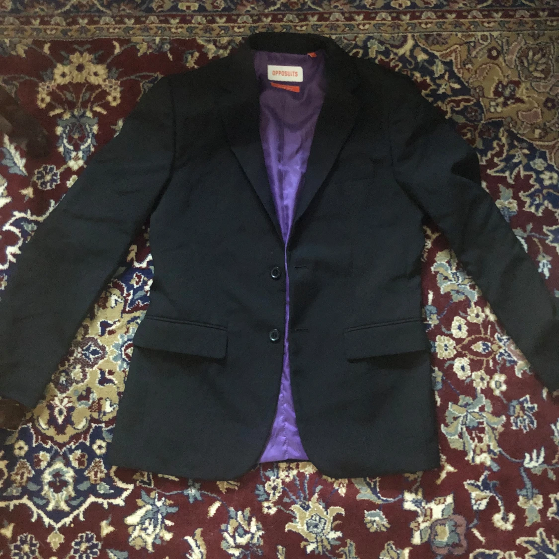 Svart kavaj med lila detaljer, passar m/s. Finns en slips till om man vill ha också