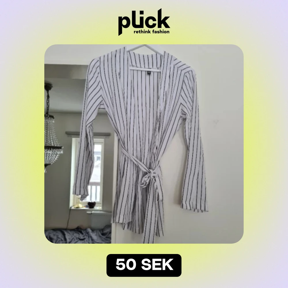 En snygg tunn blazer, knyt i midjan eller ha den öppen. Klär lätt upp en bas outfit. Endast använd några gånger, normal i storlek. Kom med prisförslag 😊 Material: 95% Polyester, 5% Elastan.