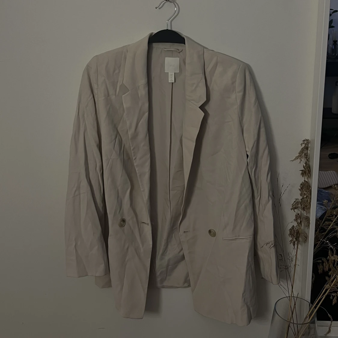 En beige kavaj från hm använd en gång den är i storlek S men sitter lite oversized