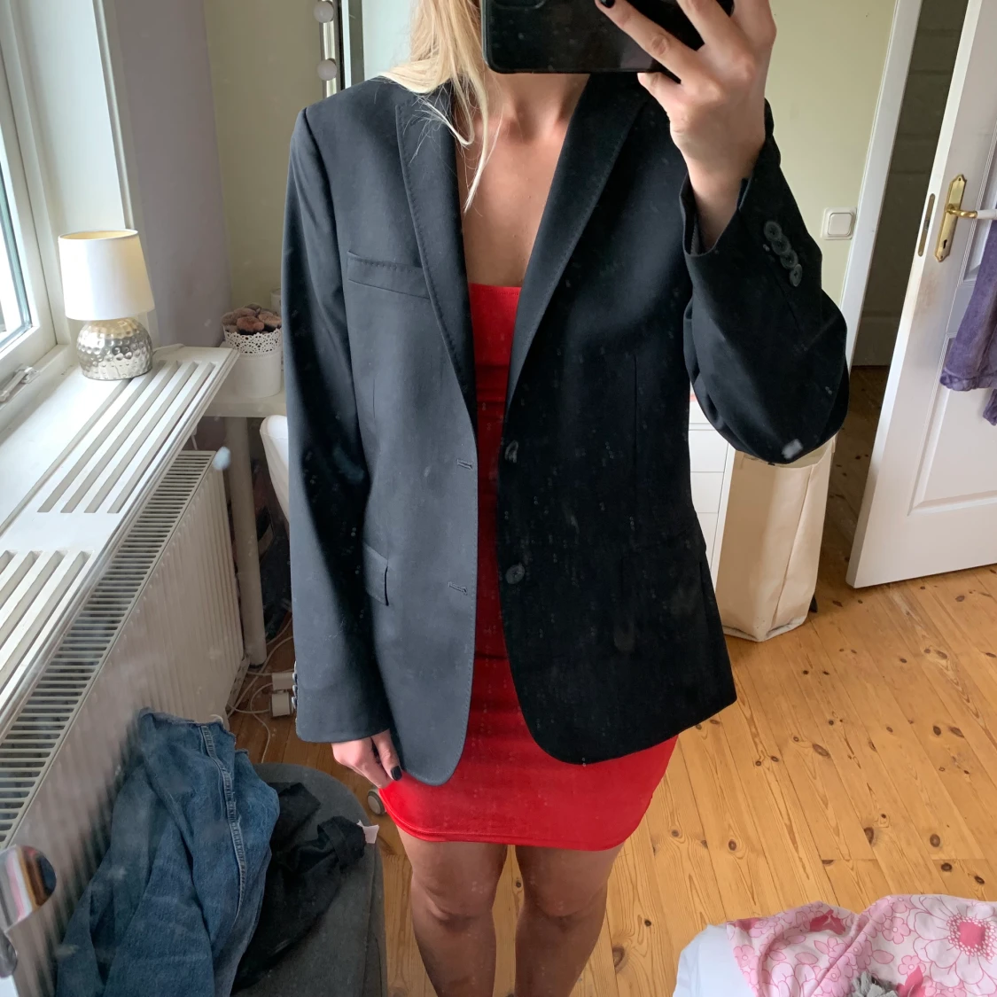 Jättenajs svart kavaj köpt second hand! Har axelvaddar. Oversized på mig som brukar ha S/M. står ingen storlek men skulle gissa på L❤️🔥