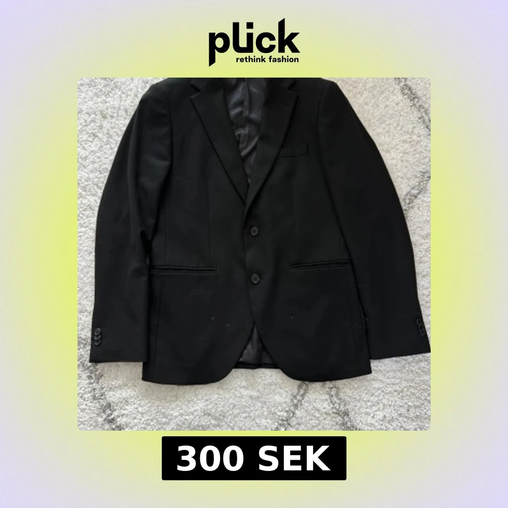 Fin svart kostym (kavaj+byxa) från Riley. Kavaj storlek: 48 Byxa storlek: 50 Bra skick! Inga skador. Använd fåtal gånger.