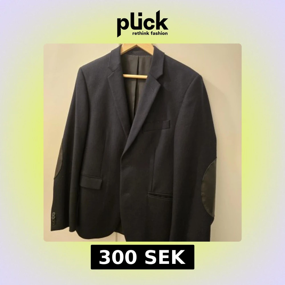 Säljer en fin marinblånkavaj ifrån Bläck. Läderdetaljer på armbågarna, se bild. Kavajen är av 50% ull. Fint skick, sparsamt använd.