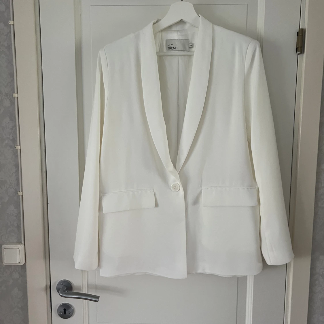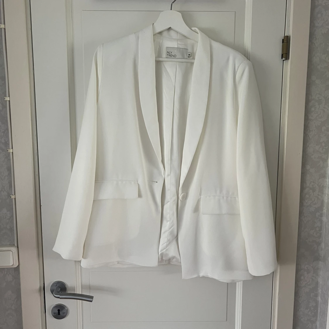 Jättefin vit kavaj i nyskick från Nelly i storlek 38. Endast använd ett fåtal gånger. Köparen står för frakten. 🥰