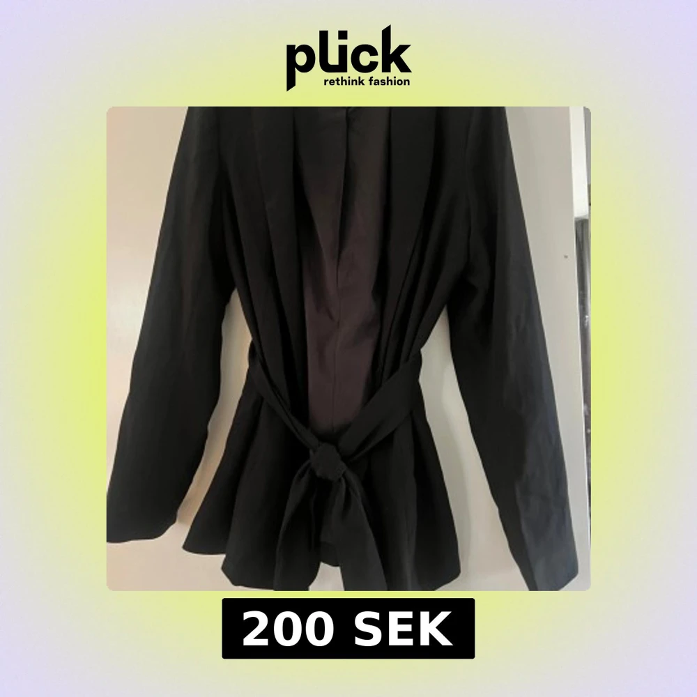 Jag säljer min svarta kavaj med en snöre i midjan och kort slits i ärmarna från ellos. Den är i storlek 42 men sitter som en XS/S!! Den är i väldigt bra skick och har används väldigt lite!