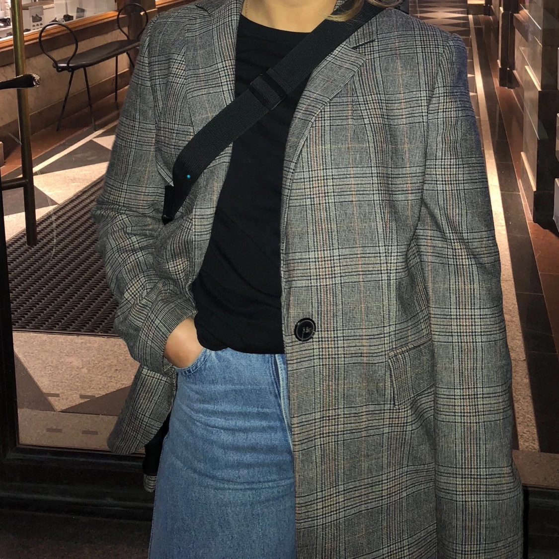 Grårutig kavaj från Zara i strl. S. (Är 153cm lång)