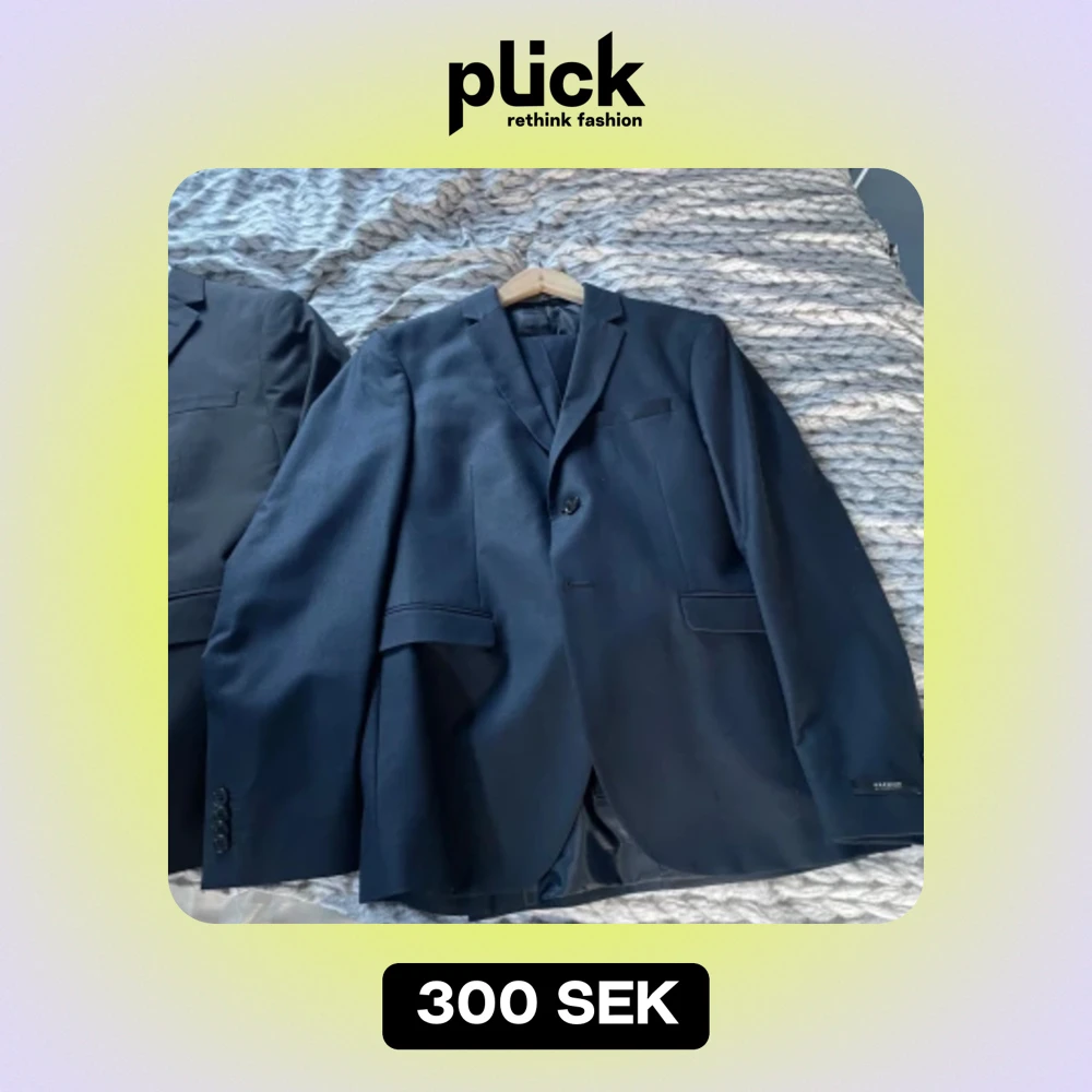 Skick-9/10, säljes då de inte passar mig längre. Båda kavajerna är i väldigt fint skick knappt använda. Till den marinblåa kavajen så finns även ett par byxor till den att köpa till.