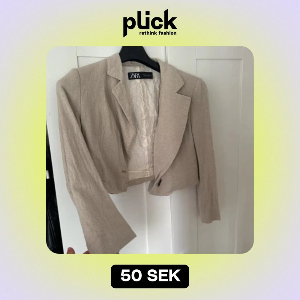 Kort kavaj från zara. Den är ostruken på bilden men är i fint skick. Storlek S