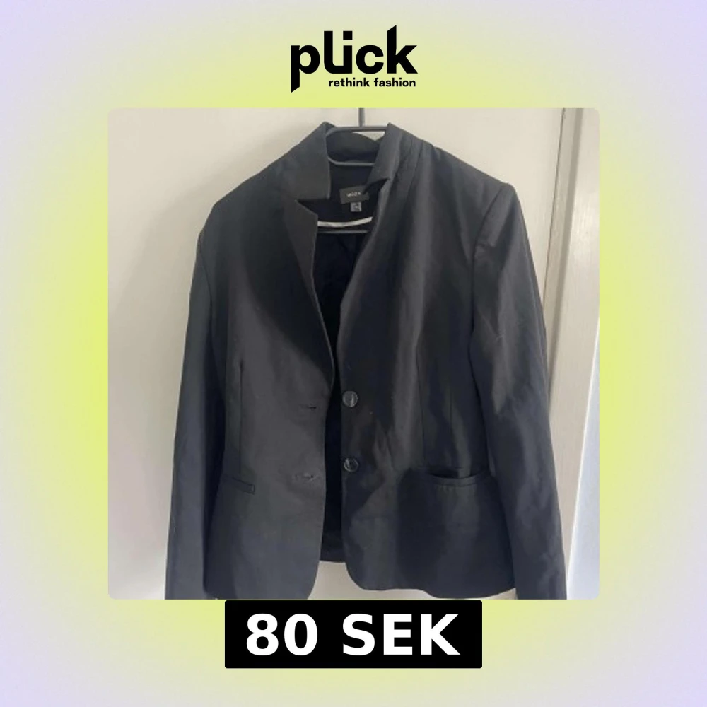 Snygg och klassisk kavaj i svart, perfekt för både jobb och fest. Skräddad passform med två knappar framtill och diskreta fickor. Bekväm att bära med lätt stretch. I mycket fint skick.