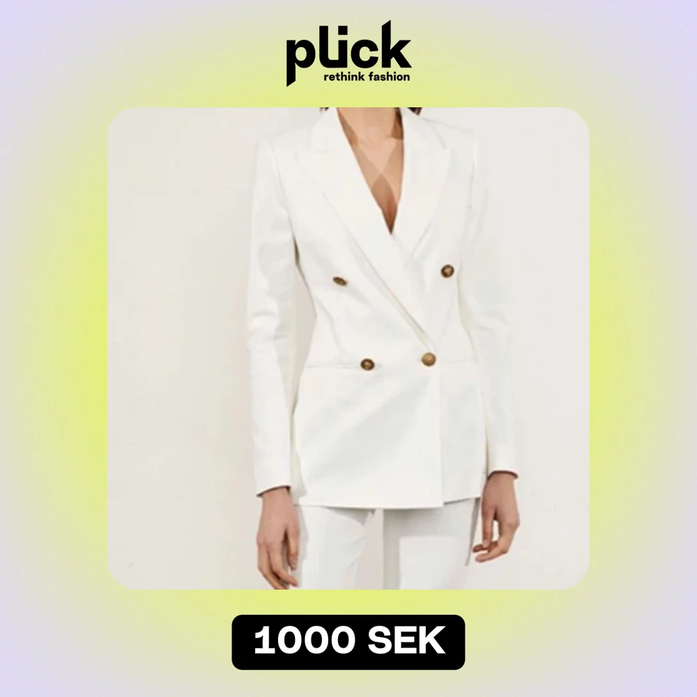 vita kavaj och byxa set är helt nytt och i storlek M för kavajen och L för byxan. Kavajen ger en elegant touch medan byxan ger bekvämlighet. Den perfekta kombinationen för en stilfull och bekväm look. #student