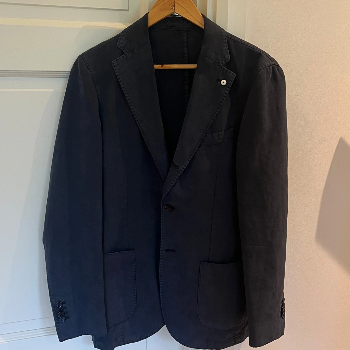 Sjukt snygg kavaj från italienska märket L.B.M 1911 som är kända för sina avslappnade kavajer, perfekt för en utekväll nu på sommaren. Nypriset på en sån här kavaj ligger på 6000kr. Modellen heter jack och har en tre-knappars öppning. Suveränt skick, använt den endast en gång. Storlek 44 vilket motsvarar ungefär S. Hör gärna av dig vid frågor eller funderingar!