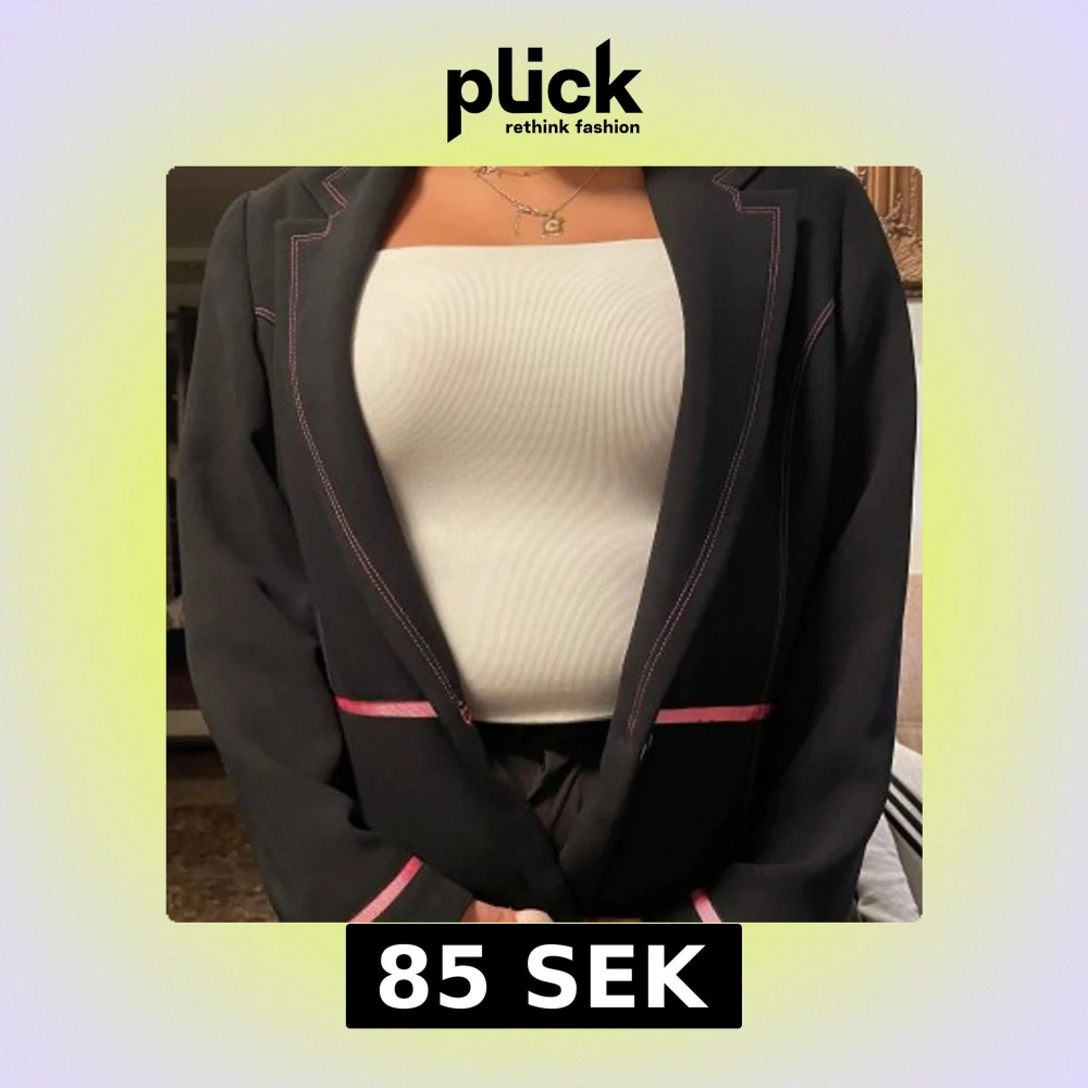 Snygg svart kavaj med rosa sömmar och detaljer. Kavajen har en knapp framtill och en stilren design som passar perfekt för en chic look.