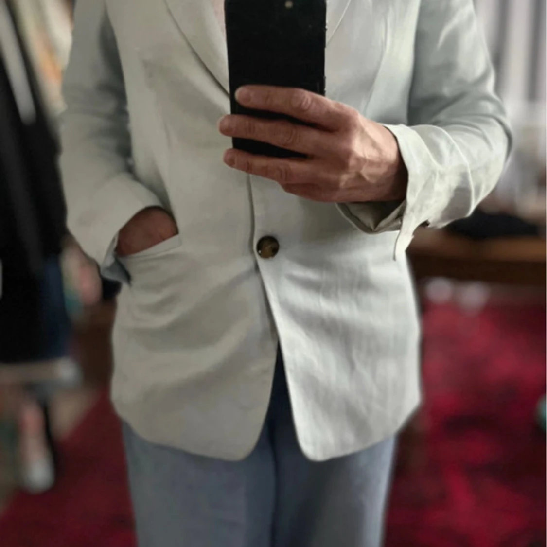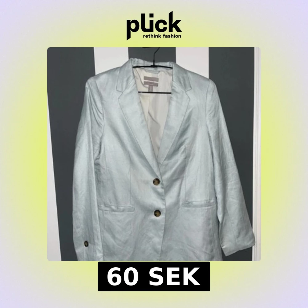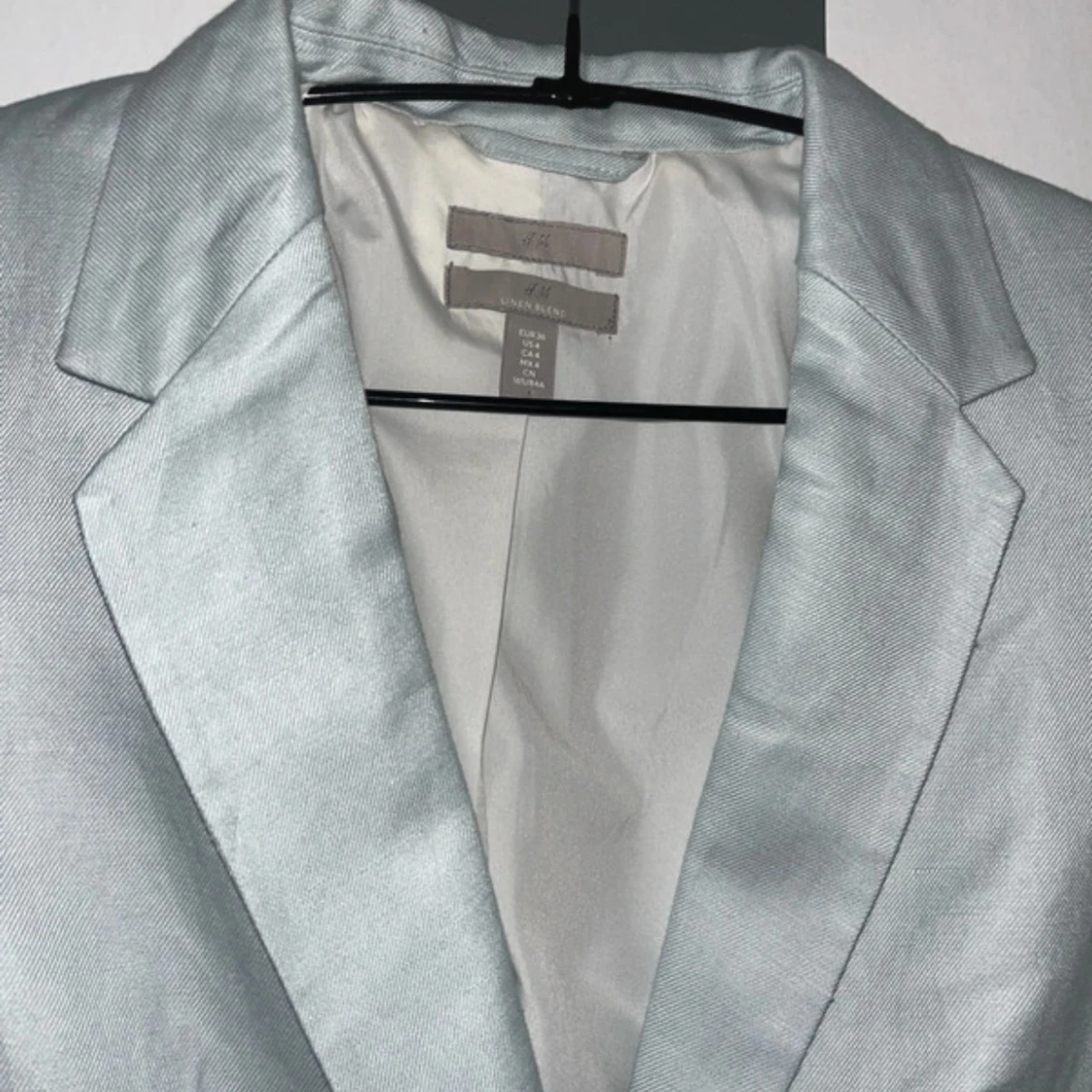 Snygg ljusblå kavaj från H&M i linneblandning. Klassisk modell med två knappar framtill, fickor och slits bak. Perfekt för dig som gillar stilrena och fräscha looks. Passar till både jeans och kostymbyxor.Fin kavaj i linne blend Ljusblå Stl 36