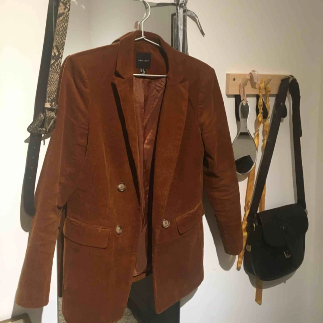 Manchester kavaj, använd endast en gång. Köpte i slutet av sommaren! Från New Look, så snygg väldigt 70 tal och trendigt. Går ej att knäppa, snyggt med ett midjeskärp till!