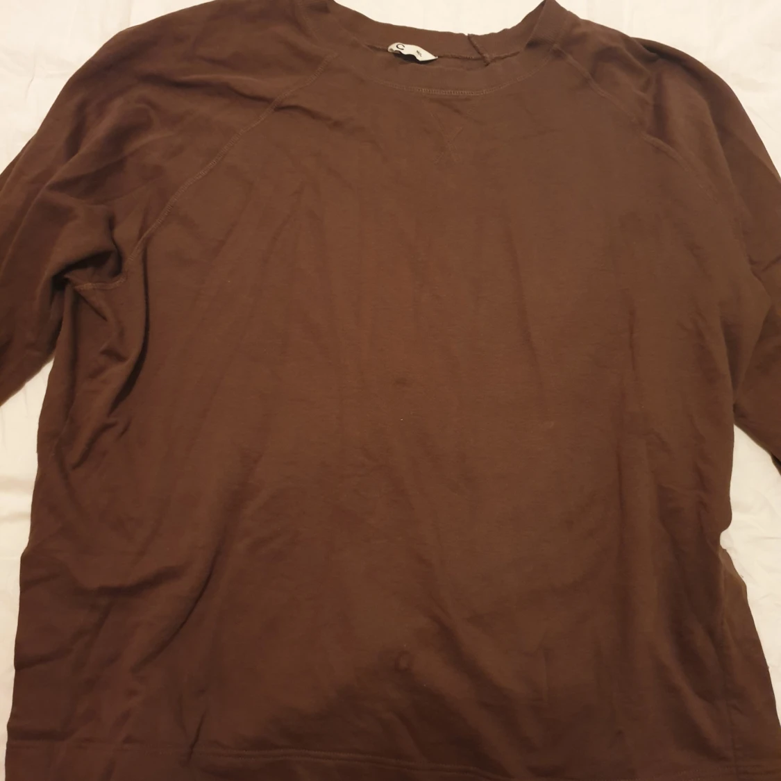 En brun långärmad tröja med rund halsringning. Tröjan är i en mjuk och skön kvalitet. Säljer för 50