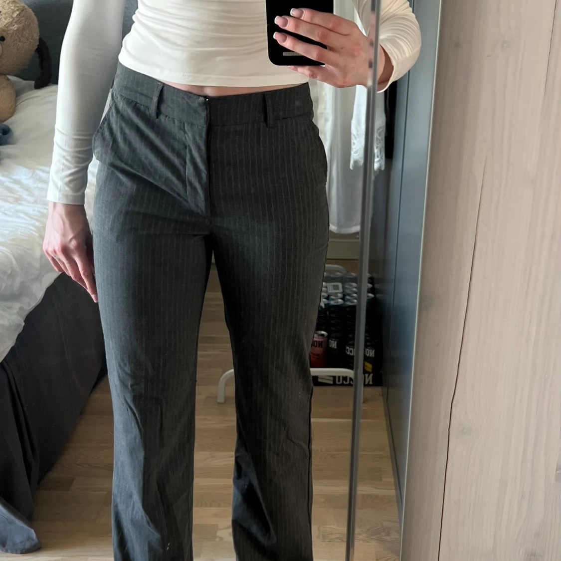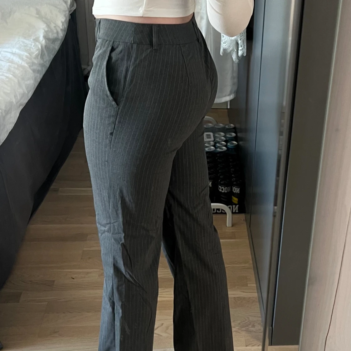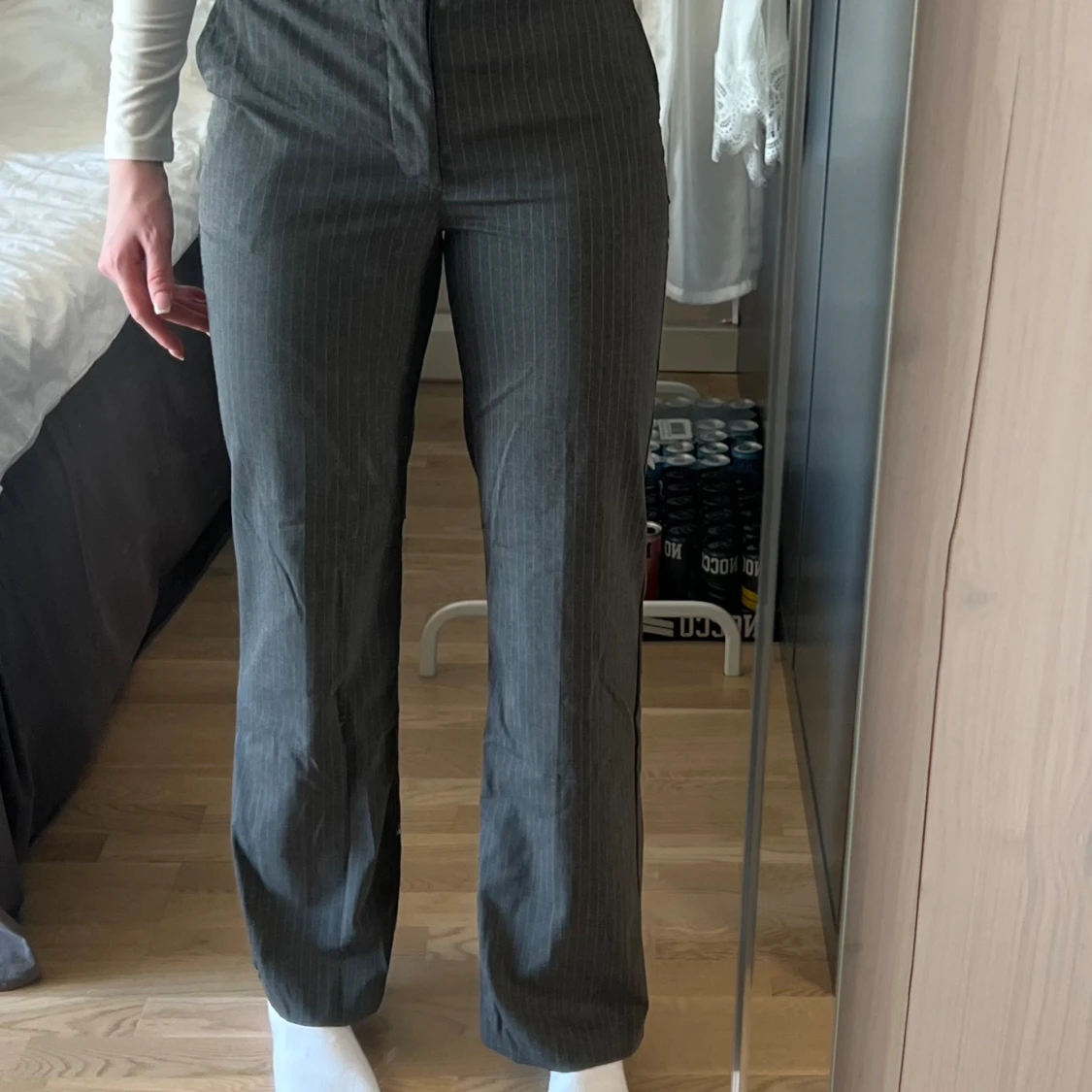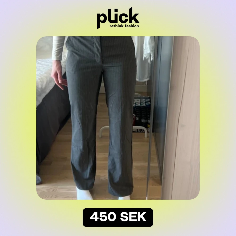 Så otroligt snygga kostymbyxor ifrån Madlady. De är gråa med vita streck i Modell 36 Tall. Tyvärr är de för korta på mig som är 182 🩷 Nypris 649kr
