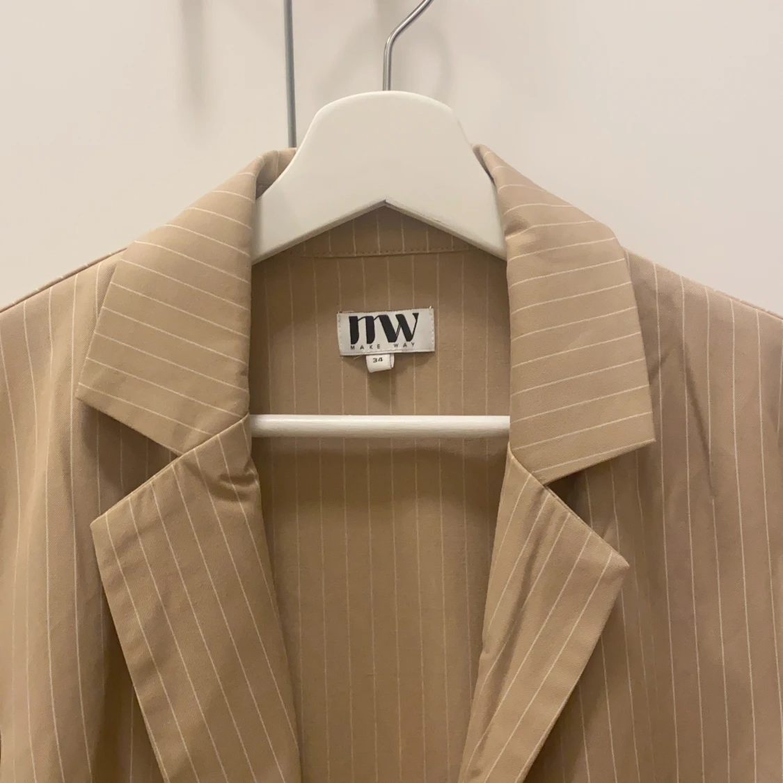 Beige blazer med svaga vita ränder. Knapp framtill. Storlek 34. Köpt på Nelly