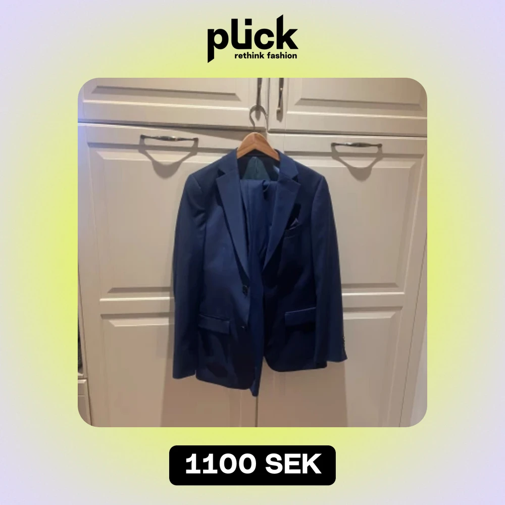 Kavaj storlek: 44 (slim fit) Byxor storlek: 30/30 (slimfit Följer också med: fluga och näsduk i samma färg Originalpris: 2,400kr *Använd en gång* *Priset kan diskuteras*