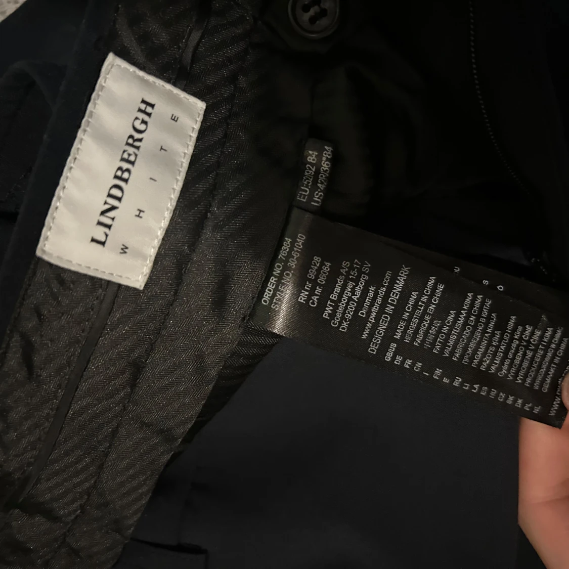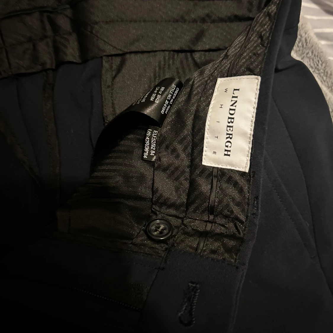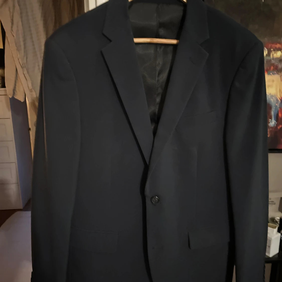 Snygg marinblå kostym från J.Lindeberg med klassisk kavaj och matchande kostymbyxor. Kavajen har smala slag, enkelknäppning och diskreta fickor. Perfekt för dig som vill ha en stilren och tidlös look. Materialet är polyesterblandning för en skön känsla. Använd 1 gång förra året och kemtvättad efter så en är precis som ny. Köpt för 3900