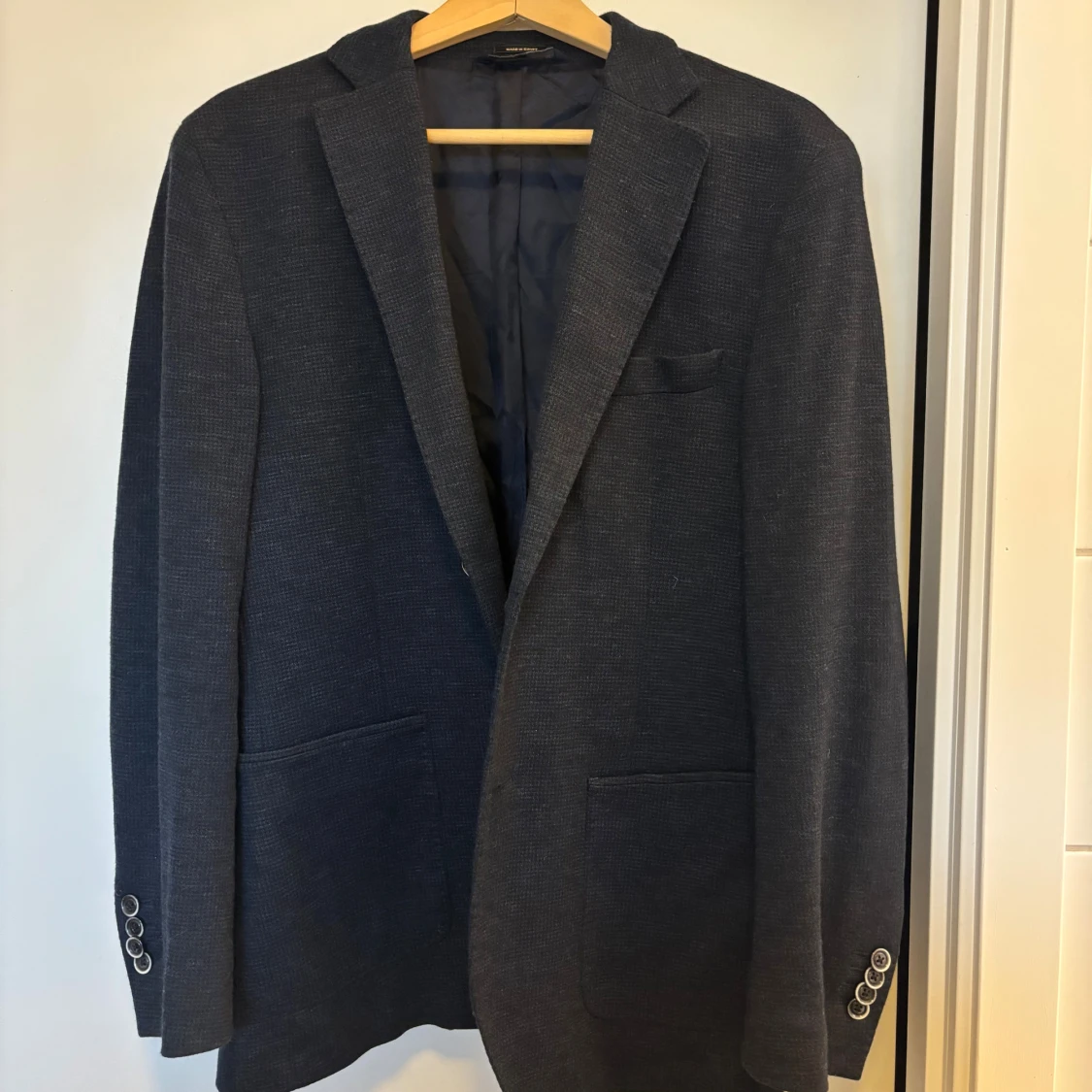 Snygg mörkblå kavaj från Massimo Dutti som passar till allt. Storlek 52 men passar M-L.