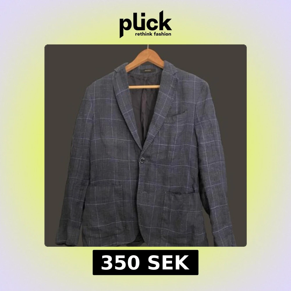 Snygg grå kavaj med vitt rutmönster och klassisk passform. Kavajen har en knapp framtill, två fickor och en bröstficka. Perfekt för bal eller festliga tillfällen.