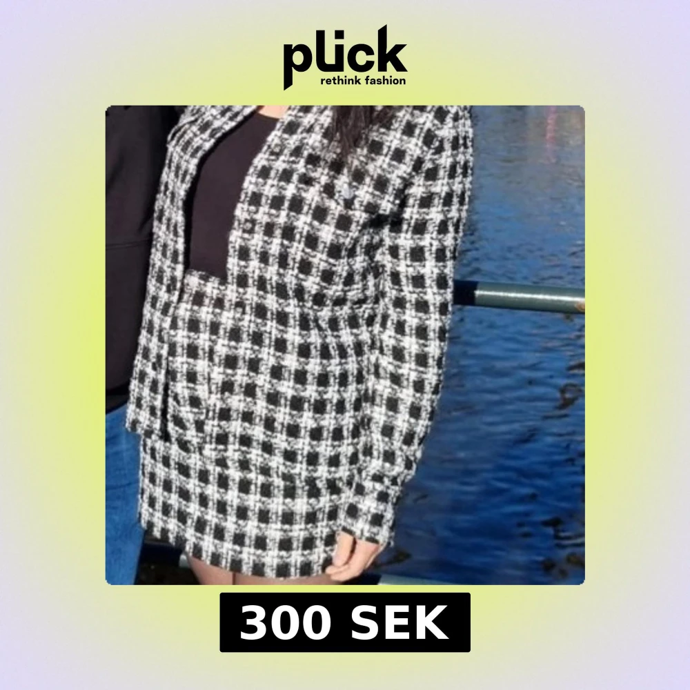 Matcande set med kjol och skjorta / jacka i bouchle. Kjolen är storlek L men skjortan är i storlek S (detta pga överdelen är oversize) Endast använd vid 2 tillfällen!