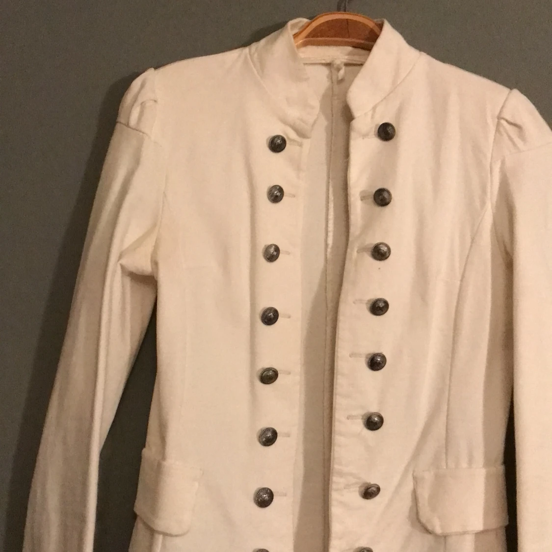 Vit figursydd kavaj med halvhög krage och fuskfickor. Supersnygg på, ramar in midjan! Köpare står för frakt!