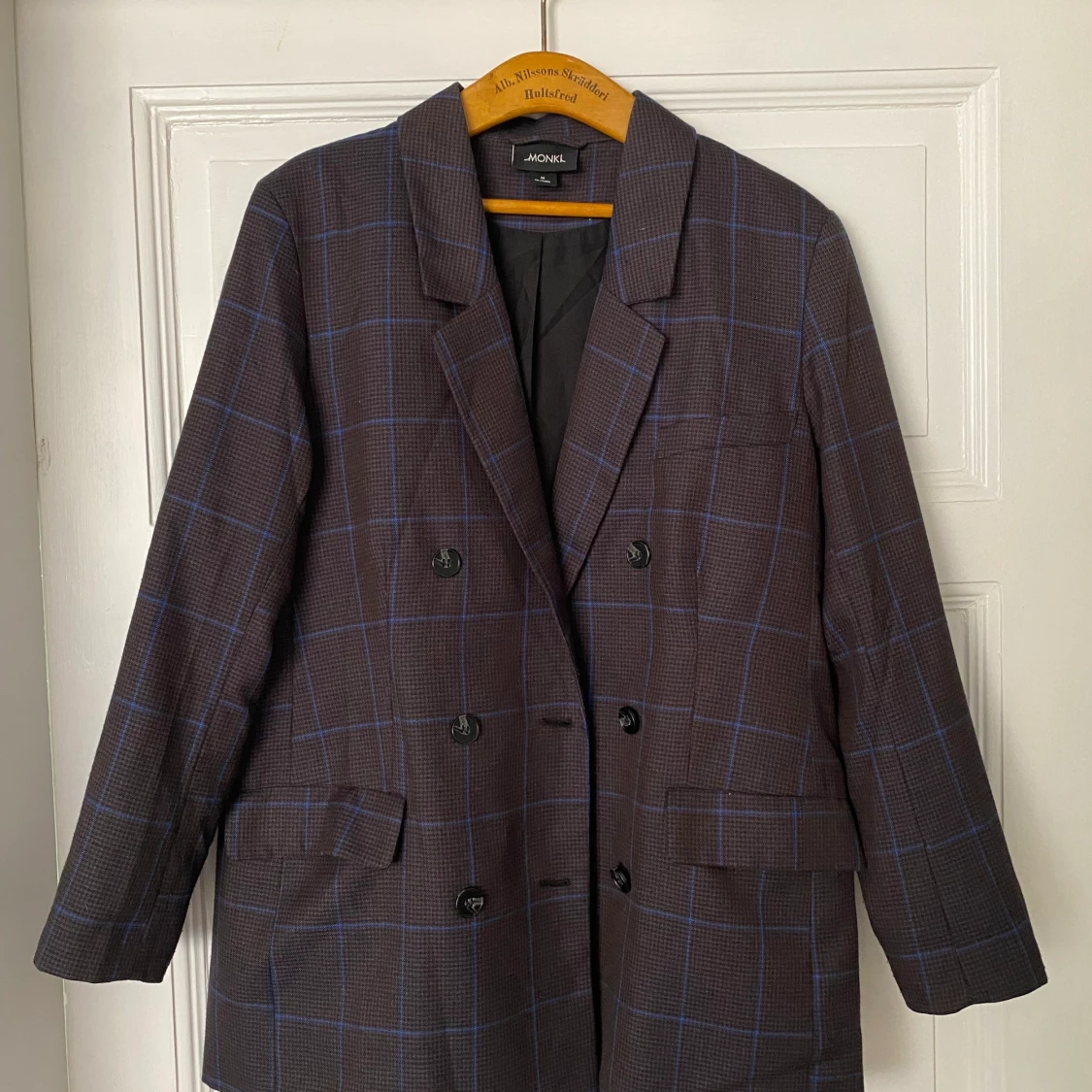 Grå/lila rutig kavaj från Monki. Storlek M men passar även L.