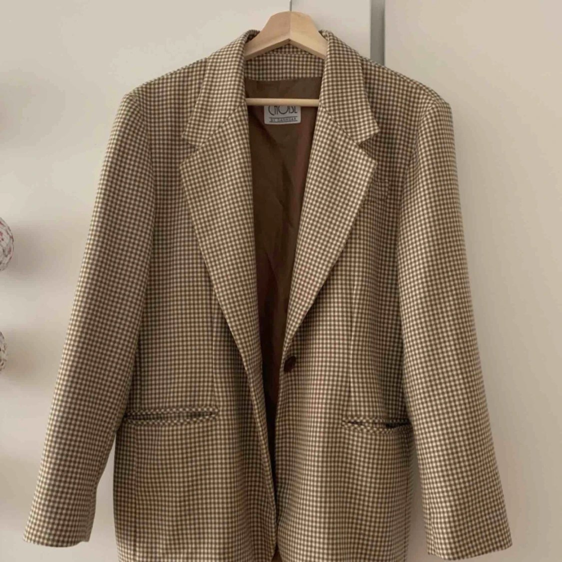 Kavaj köpt second hand. Står ingen storlek men funkar nog S-L beroende på hur den ska sitta. Tror det är en dammodell så ärmarna är bra längd.