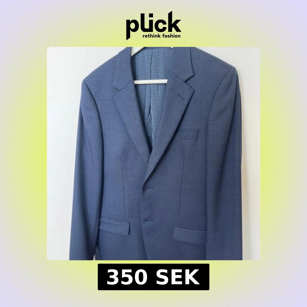 Snygg mörkblå kavaj från Bruun & Stengade med diskret strukturmönster. Klassisk passform med två knappar framtill, tre fickor och slät krage. Fodret har ett rutigt mönster i blå toner. Perfekt för dig som vill ha en stilren och tidlös look. Nästan oanvänd och därmed nyskick.
