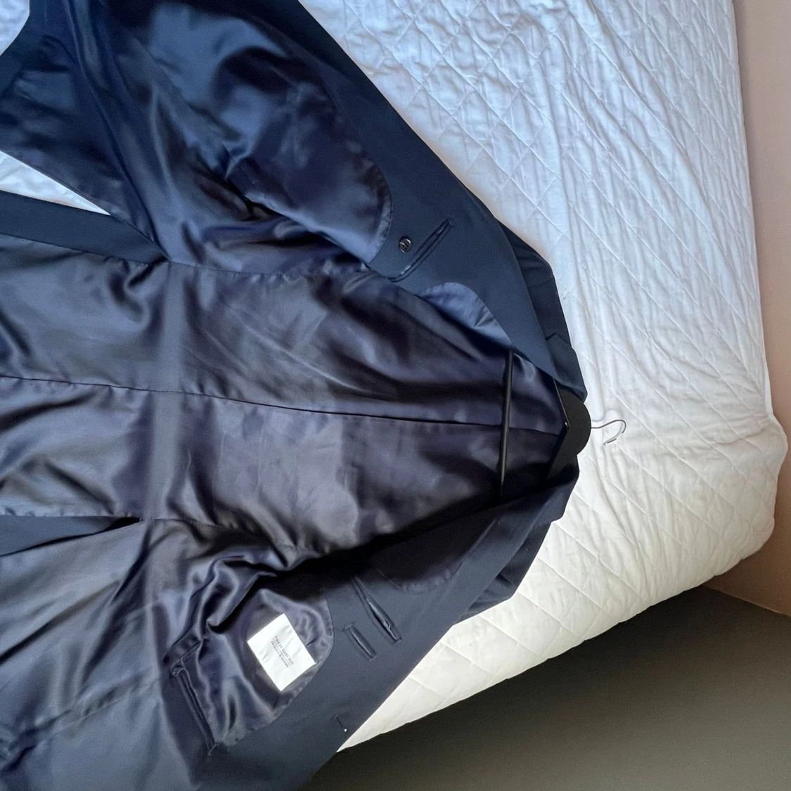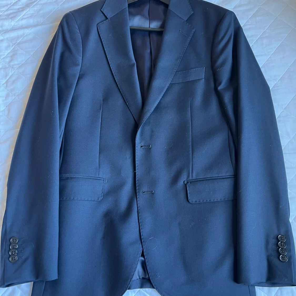 Snygg mörkblå kavaj från These Glory Days med klassisk passform, två knappar framtill och tre fickor. Fodrad insida i blankt tyg och stilrena detaljer. Perfekt för dig som vill ha en stilren och tidlös look.