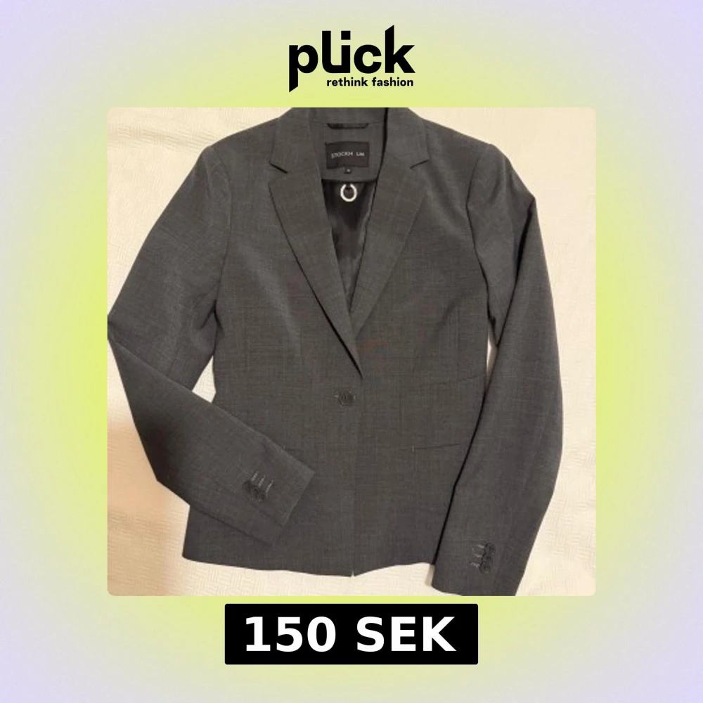 Snygg mörkgrå kavaj från STOCKH LM i klassisk modell med smal krage och enkel knäppning framtill. Kavajen har diskreta fickor och tre knappar vid ärmsluten. Perfekt för en stilren look. Aldrig använd.