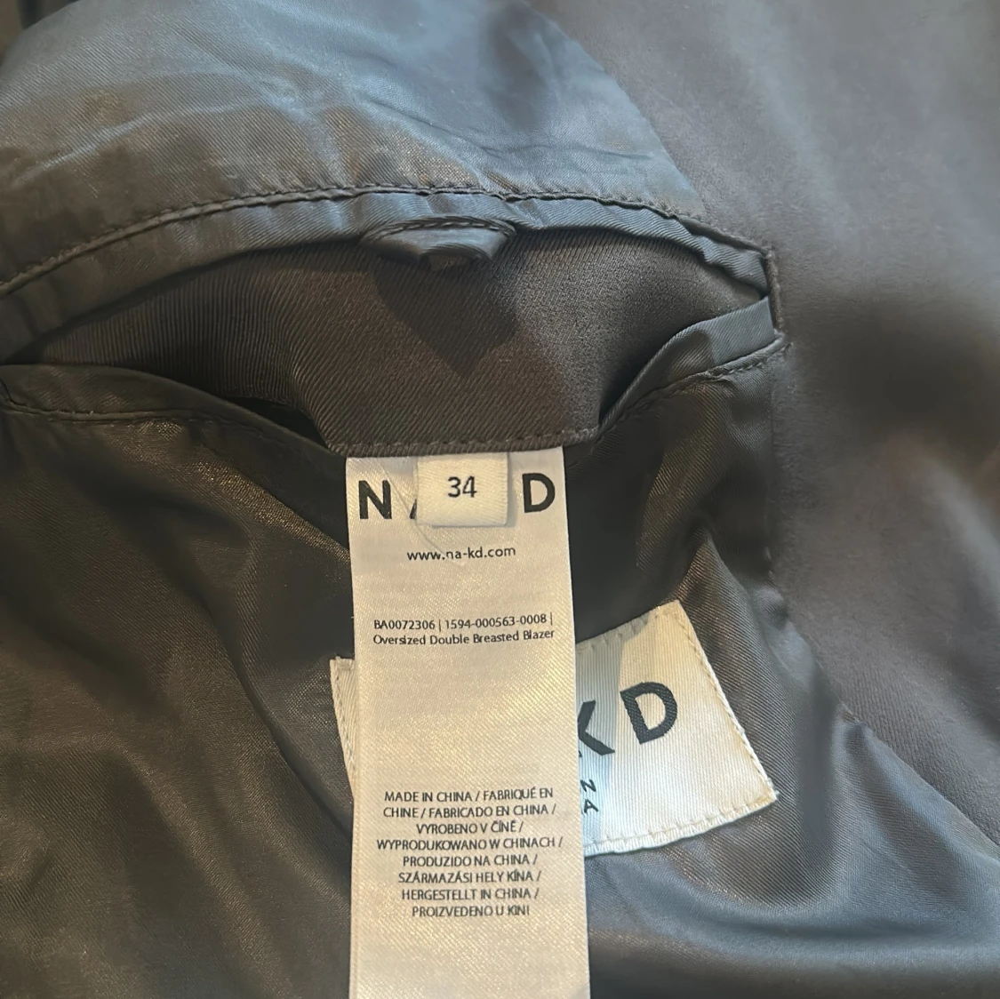 Stilren lite oversized mörk grå kavaj från NA-KD med dubbelknäppning och klassisk krage. Kavajen har två fickor framtill och är helfodrad med slät insida. Perfekt för en lite mer uppklädd outfit😇😍
